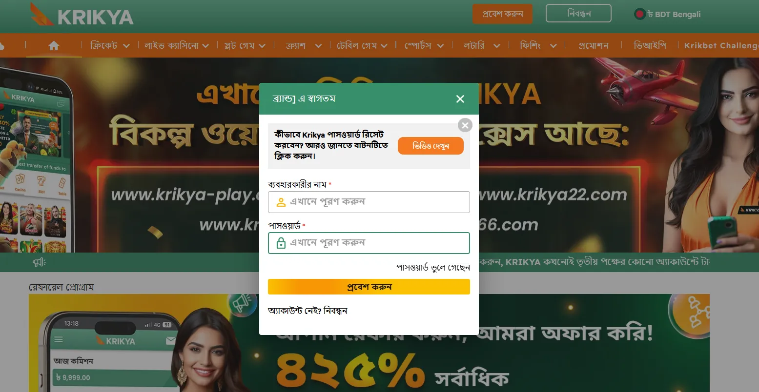 Krikya BD login ব্যবহারকারীদের জন্য এটি একটি পরিচিত ও দ্রুত উপায় ক্যাসিনোতে প্রবেশ করে সরাসরি খেলা শুরু করার।