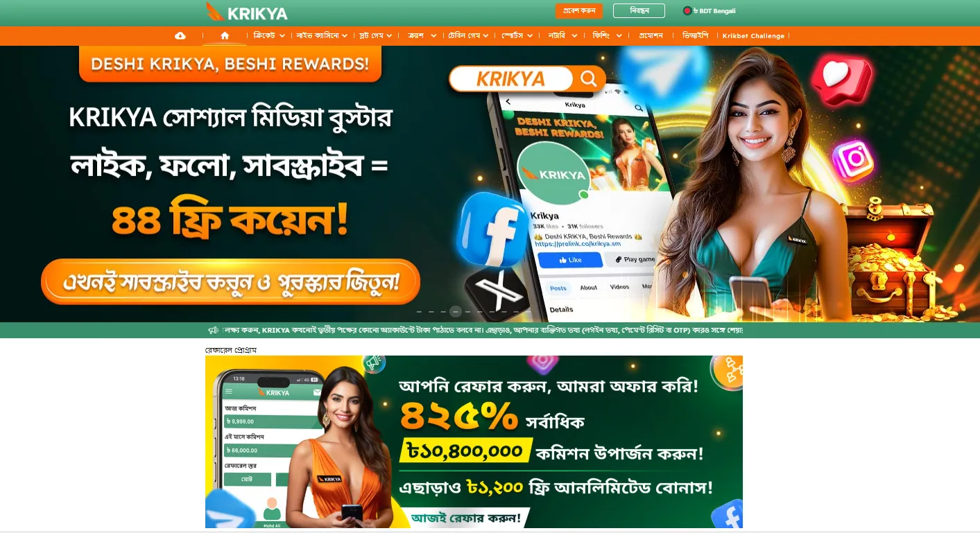 - সক্রিয়তা ও রেফারেলের ভিত্তিতে উপহার (পার্টনার প্রোগ্রামে যুক্ত হয়ে Krikya agent login করলে আপনি এই বোনাসগুলো পাবেন)।