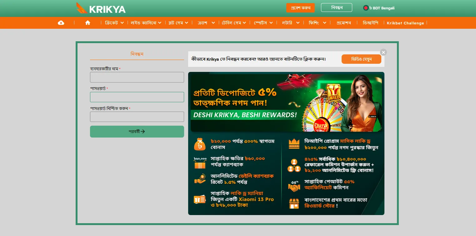 - অফিসিয়াল ওয়েবসাইটে যান এবং Krikya online casino login registration ফর্মটি খুলুন।